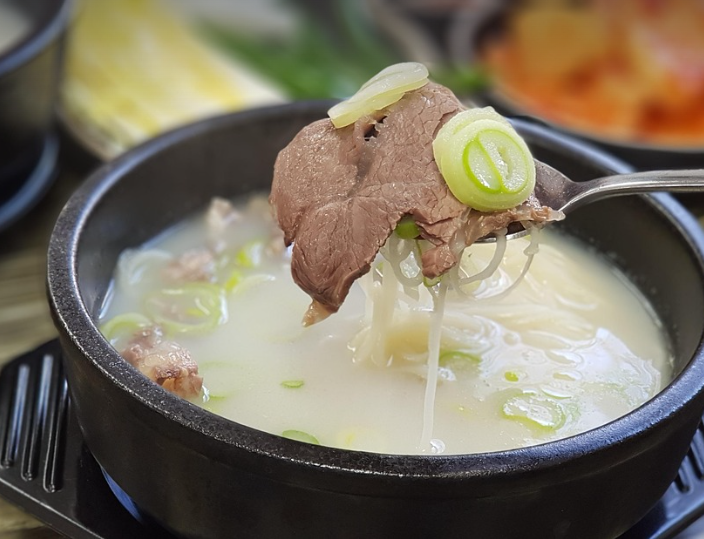 설렁탕은 각종 소뼈를 함께 삶아 조리한 음식으로 뼈 형성을 촉진하며 노화 억제 및 피부재생과 보습에 효능이 있습니다.