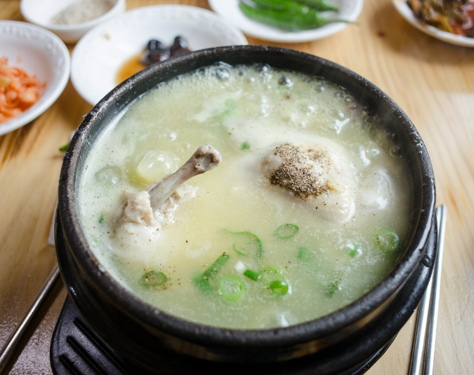 닭뿐만 아니라 혈액 순환에 도움이 되는 인삼, 당분과 단백질이 풍부하며 비타민이 함유된 대추, 고혈압에 효과적인 마늘 등 다양한 재료들과 함께 먹을 수 있는 보양식으로 옛날부터 전해 내려오는 한국 전통 음식입니다.